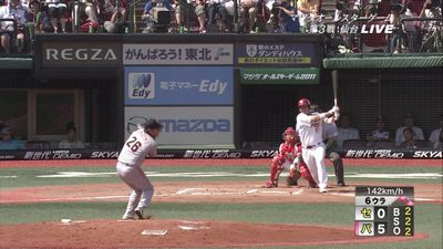 楽天は打線が奮わず、好投の塩見を見殺し。七回に嶋の中前打で1点を返すのがやっとで、3連敗。